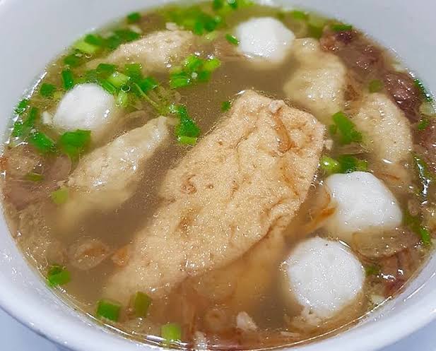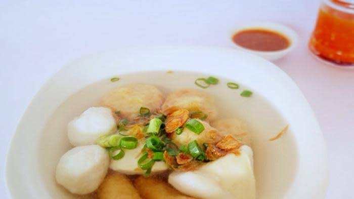 Di dalamnya ada bakso ikan, tahu yang diberi daging ikan dan fukien (otak-otak ikan).